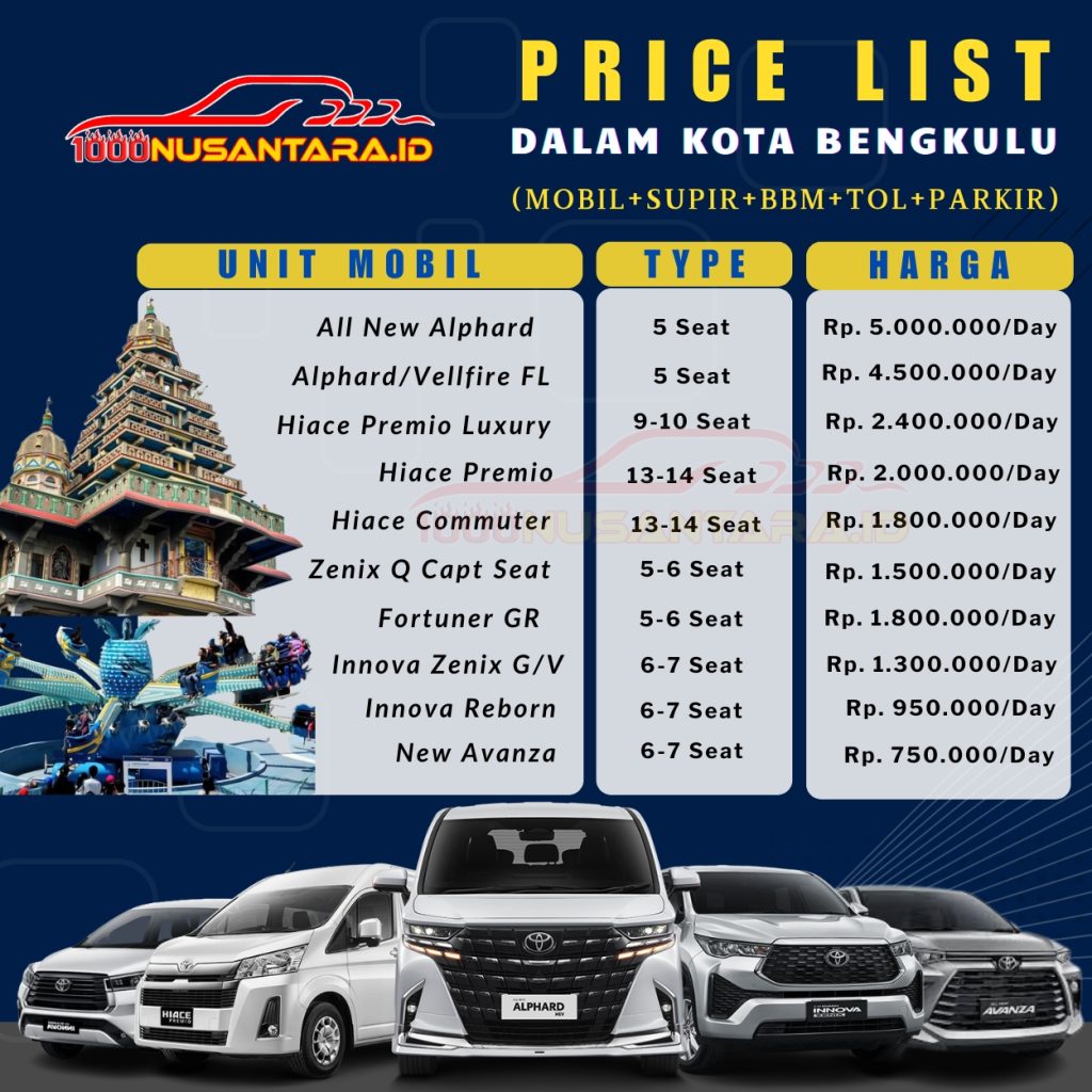 Diatas adalah detail Harga Rental Mobil Bengkulu